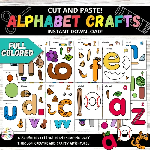 Printable alphabet cut and paste crafts designed to help kids build letter recognition and fine-motor skills through hands-on learning. Perfect for PreK–1st grade classrooms and at-home practice.