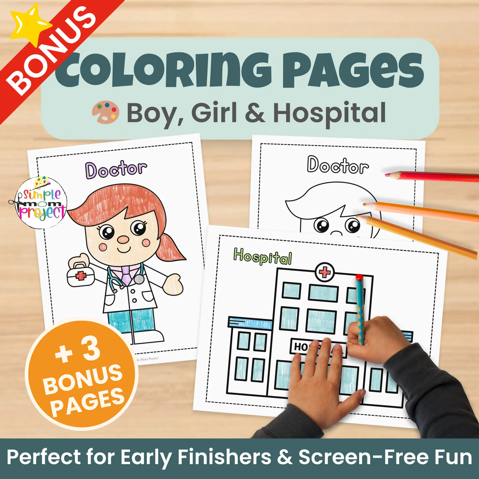 ⭐ Doctor-themed coloring pages – perfect for early finishers or quiet time