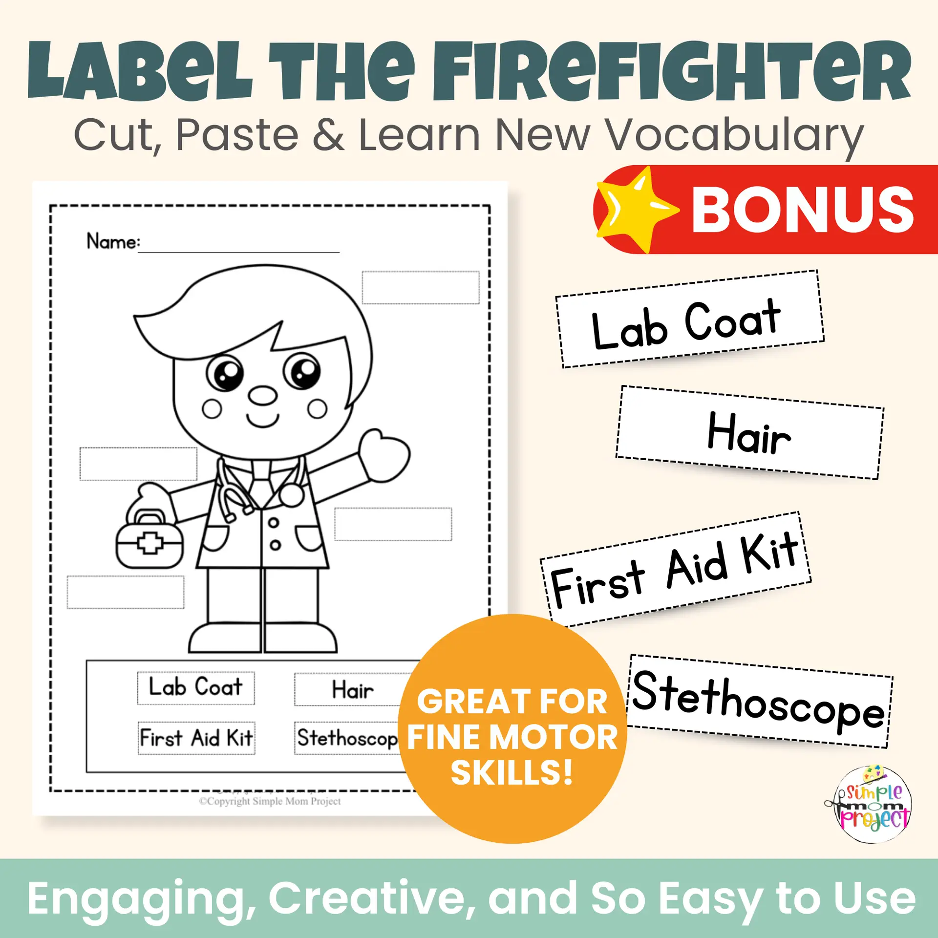 This doctor activity — plus all bonus pages — is also included in our Community Helper Bundle, where you can get multiple helpers, tracing pages, labeling activities, and coloring pages in one easy download.