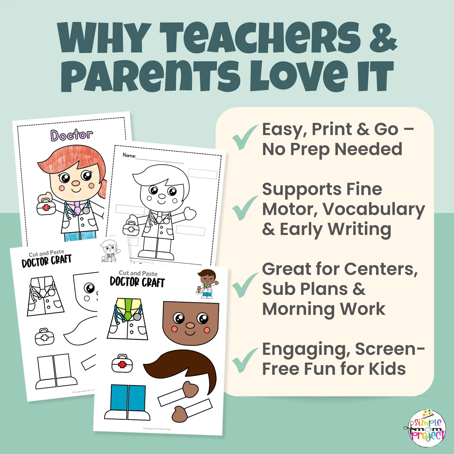 This Doctor Cut & Paste Craft is an engaging printable activity that lets kids create their own doctor while building essential early learning skills.