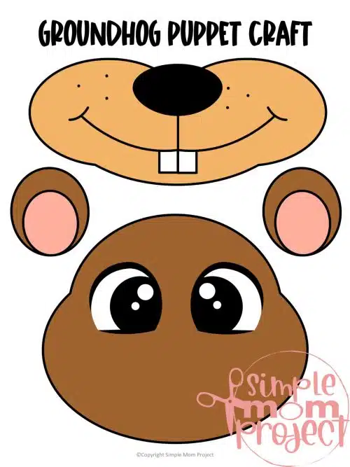 - For a full tutorial and helpful uses for this groundhog puppet craft, please see our Printable Groundhog Puppet post.