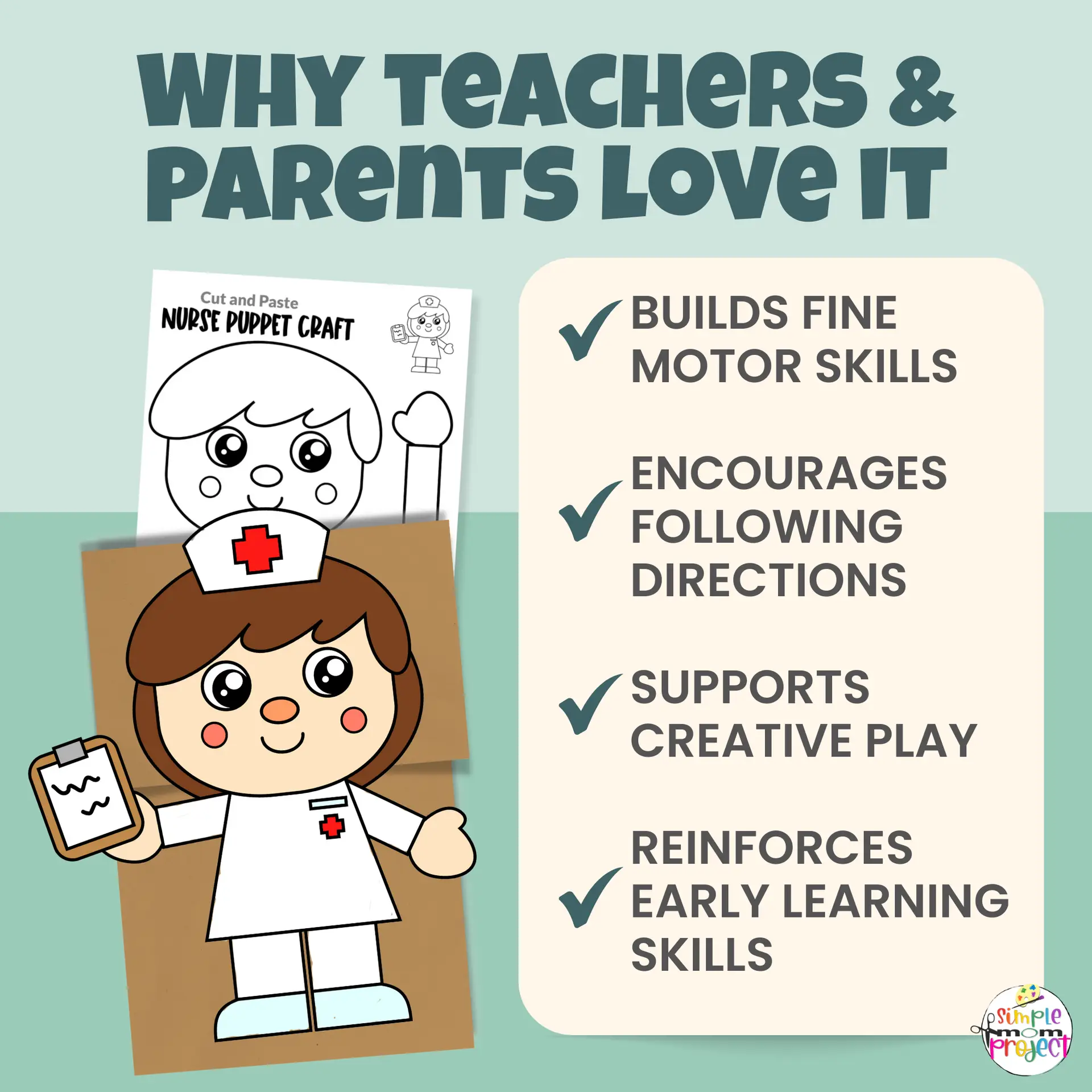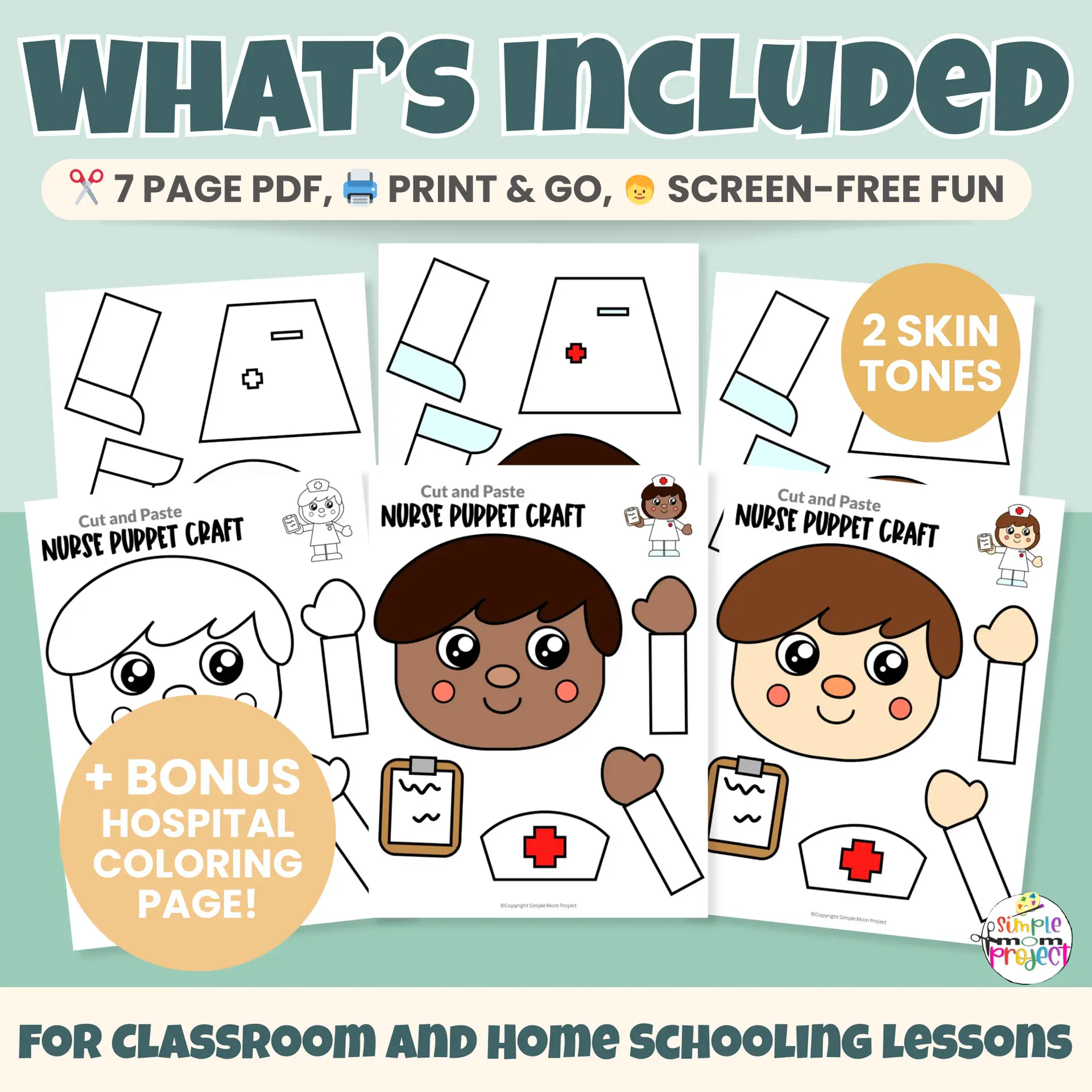 - For a full tutorial and helpful uses for this Nurse craft, please see our Printable Nurse Paper Bag Puppet post.