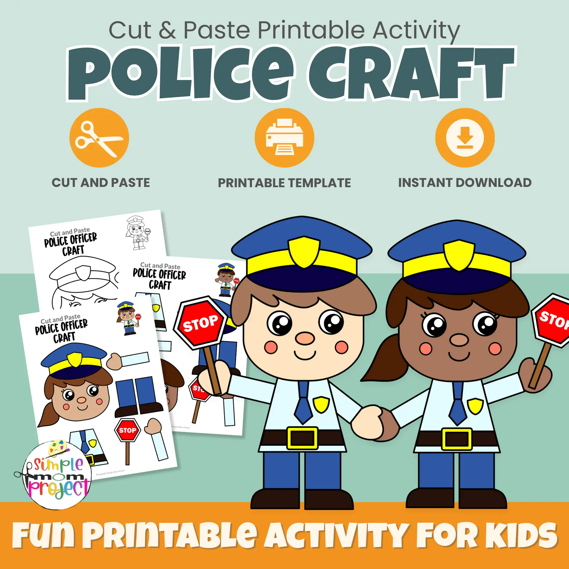 🚔 Police Officer Cut & Paste Craft for Kids (Printable)