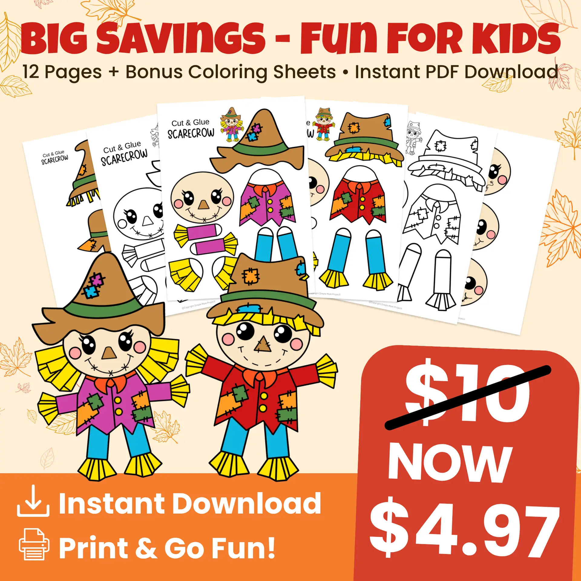 Printable Scarecrow Craft for Kids – Easy Fall Cut & Paste Activity